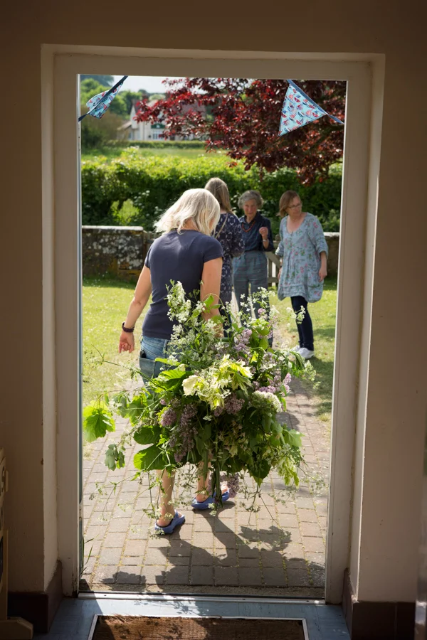 We had the most wonderful afternoon painting with the incredibly talented Julie who lives in Wimborne St Giles. She arrived carrying the biggest bunch of flowers and foliage I’d ever seen! She’d collected them from the surrounding hedgerows and fields and she soon set about arranging them in various containers and vases on an old wooden step ladder she found in the hall. The end result was something only an artist could create… effortlessly stylish and a joy to look at, let alone paint!