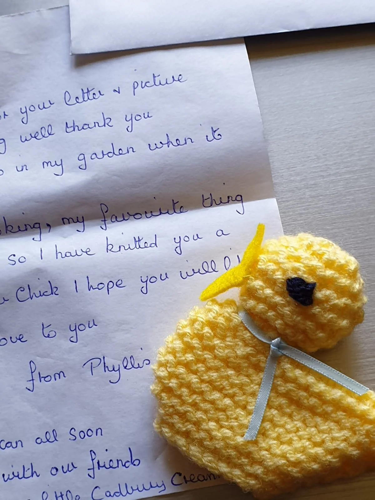 • We received our first ‘Jolly Post’ from a lovely lady who wrote to little Henry, aged five, she even enclosed a gorgeous little Easter chick she’d knitted for him.